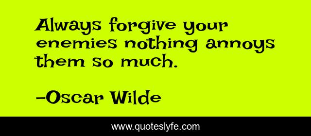 This page presents the quote "Always forgive your enemies nothing annoys them so much.". Author of this quote is Oscar Wilde. .