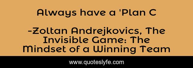 This page presents the quote "Always have a 'Plan C". Author of this quote is Zoltan Andrejkovics, The Invisible Game: The Mindset of a Winning Team. This quote is about inspiring, positive, motivational, confidence, sports, optimistic, team,.