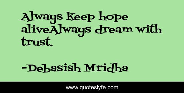 "Debasish Mridha Quotes." Quoteslyfe.com, 2025. Fri. 05 Dec. 2025. <https://www.quoteslyfe.com/quote/Always-keep-hope-aliveAlways-dream-with-trust-69503>.