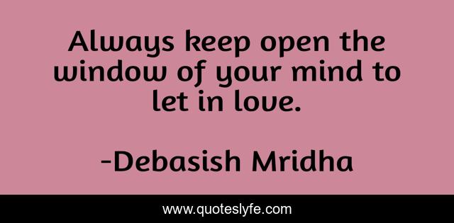 This page presents the quote "Always keep open the window of your mind to let in love.". Author of this quote is Debasish Mridha. This quote is about debasish, love, mridha, philosophy, inspirational, enthusiasm, open-window-of-your-mind, affection,.