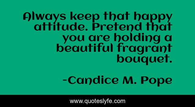 This page presents the quote "Always keep that happy attitude. Pretend that you are holding a beautiful fragrant bouquet.". Author of this quote is Candice M. Pope. This quote is about positive, confidence,.