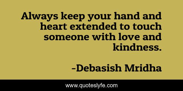 This page presents the quote "Always keep your hand and heart extended to touch someone with love and kindness.". Author of this quote is Debasish Mridha. This quote is about love-and-kindness, philosophy, debasish-mridha, quotes, debasish-mridha-md, inspirational, enthusiasm,.
