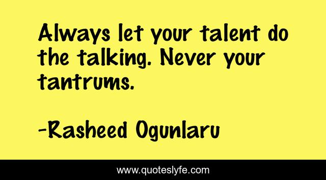 "Rasheed Ogunlaru Quotes." Quoteslyfe.com, 2025. Sun. 07 Dec. 2025. <https://www.quoteslyfe.com/quote/Always-let-your-talent-do-the-talking-83731>.