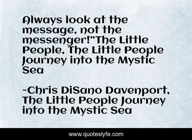 "Chris DiSano Davenport, The Little People Journey into the Mystic Sea Quotes." Quoteslyfe.com, 2025. Fri. 05 Dec. 2025. <https://www.quoteslyfe.com/quote/Always-look-at-the-message-not-the-14916>.
