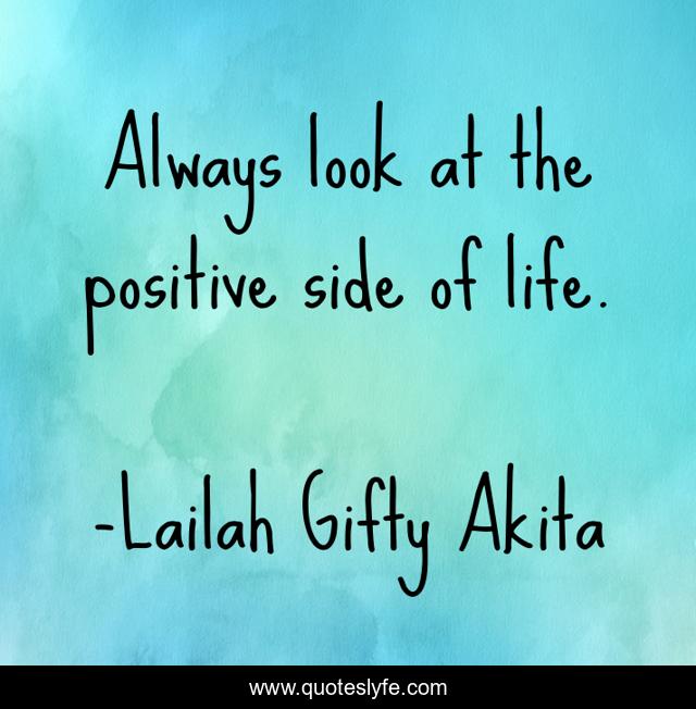"Lailah Gifty Akita Quotes." Quoteslyfe.com, 2025. Sun. 07 Dec. 2025. <https://www.quoteslyfe.com/quote/Always-look-at-the-positive-side-of-95458>.