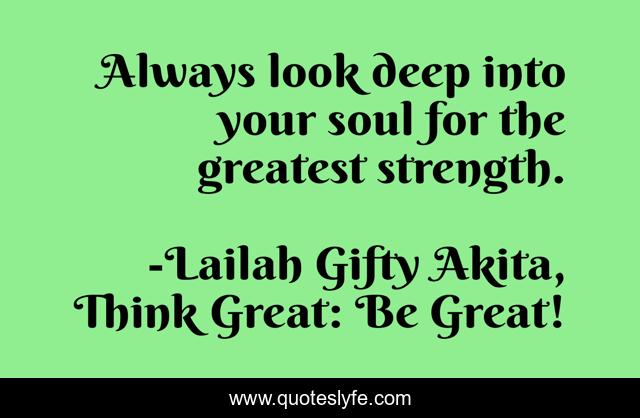 "Lailah Gifty Akita, Think Great: Be Great! Quotes." Quoteslyfe.com, 2025. Mon. 08 Dec. 2025. <https://www.quoteslyfe.com/quote/Always-look-deep-into-your-soul-for-78491>.