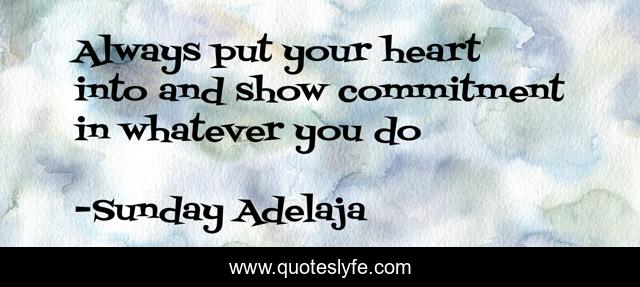 This page presents the quote "Always put your heart into and show commitment in whatever you do". Author of this quote is Sunday Adelaja. This quote is about love, pragmatic, consciousness, people, money, principles, selflessness, employment, impact,.