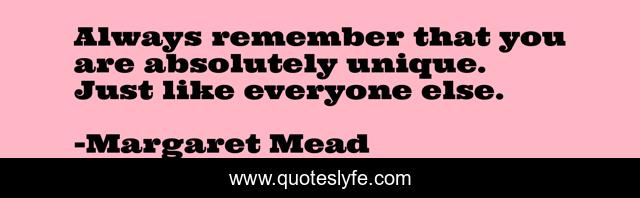 This page presents the quote "Always remember that you are absolutely unique. Just like everyone else.". Author of this quote is Margaret Mead. This quote is about individuality, unique,.