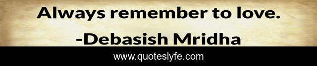 "Debasish Mridha Quotes." Quoteslyfe.com, 2025. Sat. 06 Dec. 2025. <https://www.quoteslyfe.com/quote/Always-remember-to-love-206609>.