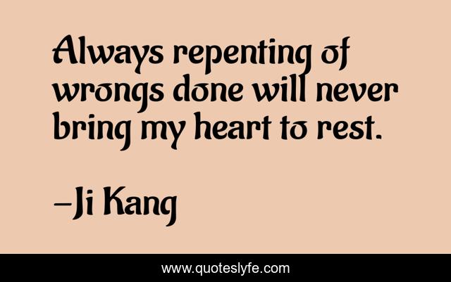 This page presents the quote "Always repenting of wrongs done will never bring my heart to rest.". Author of this quote is Ji Kang. .