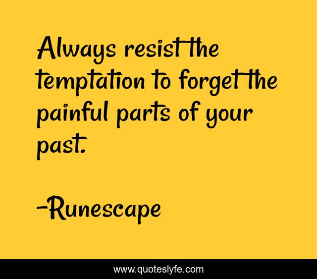 This page presents the quote "Always resist the temptation to forget the painful parts of your past.". Author of this quote is Runescape. This quote is about runescape, memory,.