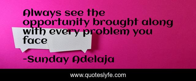 This page presents the quote "Always see the opportunity brought along with every problem you face". Author of this quote is Sunday Adelaja. This quote is about life, success, problems, opportunities, calling, difficulties, purpose, truth,.