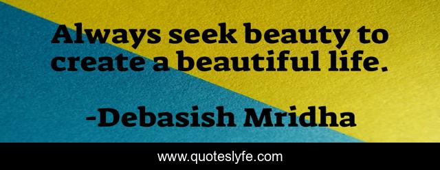 This page presents the quote "Always seek beauty to create a beautiful life.". Author of this quote is Debasish Mridha. This quote is about beautiful-life, beauty, philosophy, debasish-mridha, seek-beauty, quotes, inspirational, enthusiasm, debasish-mridha-m-d,.