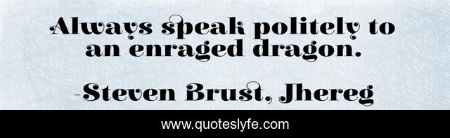 "Steven Brust, Jhereg Quotes." Quoteslyfe.com, 2025. Mon. 08 Dec. 2025. <https://www.quoteslyfe.com/quote/Always-speak-politely-to-an-enraged-dragon-146923>.