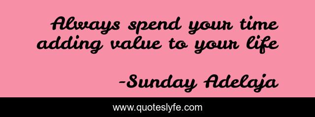 This page presents the quote "Always spend your time adding value to your life". Author of this quote is Sunday Adelaja. This quote is about life, blessing, finance, money, work, time-management, value, job, joblessness,.