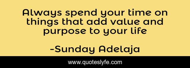 This page presents the quote "Always spend your time on things that add value and purpose to your life". Author of this quote is Sunday Adelaja. This quote is about life, blessing, finance, money, work, value, job, joblessness, purpose,.