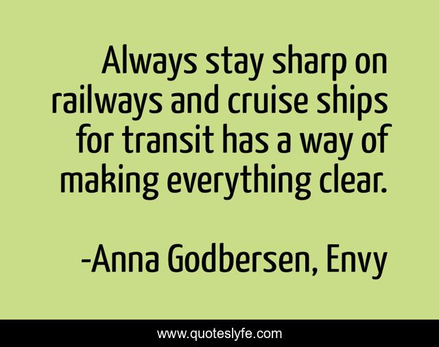 This page presents the quote "Always stay sharp on railways and cruise ships for transit has a way of making everything clear.". Author of this quote is Anna Godbersen, Envy. .