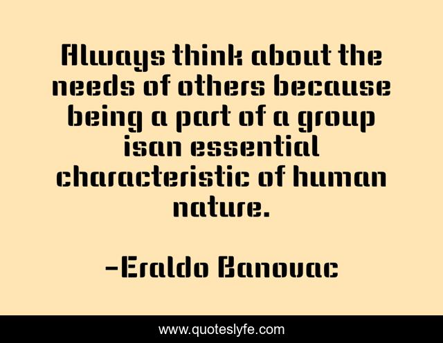 "Eraldo Banovac Quotes." Quoteslyfe.com, 2025. Sat. 06 Dec. 2025. <https://www.quoteslyfe.com/quote/Always-think-about-the-needs-of-others-175237>.