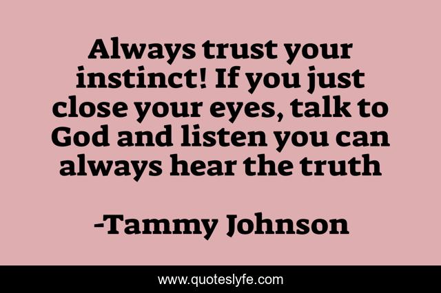 This page presents the quote "Always trust your instinct! If you just close your eyes, talk to God and listen you can always hear the truth". Author of this quote is Tammy Johnson. This quote is about empowerment, trust, inspiration, trusting-god,.