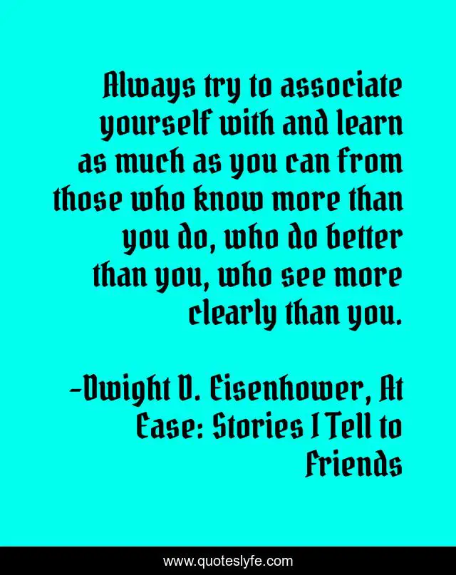 This page presents the quote "Always try to associate yourself with and learn as much as you can from those who know more than you do, who do better than you, who see more clearly than you.". Author of this quote is Dwight D. Eisenhower, At Ease: Stories I Tell to Friends. .