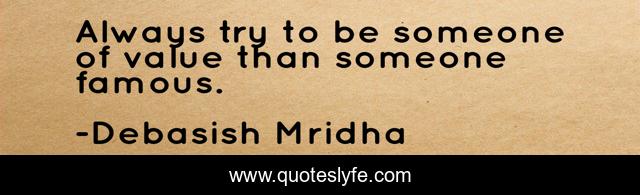 This page presents the quote "Always try to be someone of value than someone famous.". Author of this quote is Debasish Mridha. This quote is about life, love, knowledge, inspirational, intelligence, philosophy, wisdom, quotes, affection,.