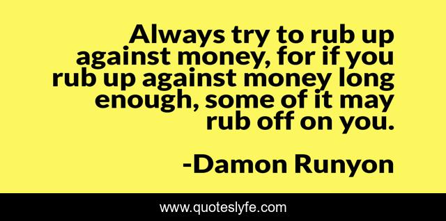 This page presents the quote "Always try to rub up against money, for if you rub up against money long enough, some of it may rub off on you.". Author of this quote is Damon Runyon. This quote is about try, long,.