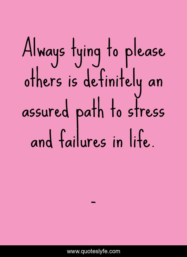 This page presents the quote "Always tying to please others is definitely an assured path to stress and failures in life.". Author of this quote is . This quote is about edmond-mbiaka, pleasing-others, trying-to-please-others, stress, failures-in-life,.