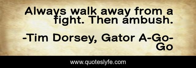 This page presents the quote "Always walk away from a fight. Then ambush.". Author of this quote is Tim Dorsey, Gator A-Go-Go. This quote is about tim-dorsey, fighting, fight,.