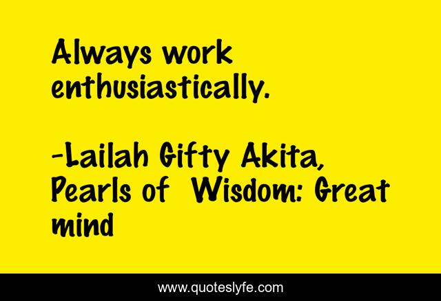 "Lailah Gifty Akita, Pearls of Wisdom: Great mind Quotes." Quoteslyfe.com, 2025. Sun. 07 Dec. 2025. <https://www.quoteslyfe.com/quote/Always-work-enthusiastically-124144>.