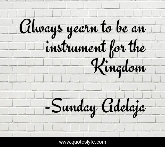 This page presents the quote "Always yearn to be an instrument for the Kingdom". Author of this quote is Sunday Adelaja. This quote is about instumentalism, life, blessing, finance, money, work, instrument, job, purpose,.