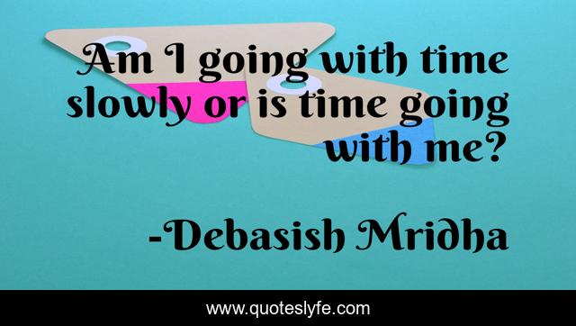 This page presents the quote "Am I going with time slowly or is time going with me?". Author of this quote is Debasish Mridha. This quote is about miraboli, oscar-wilde, philosophy, debasish-mridha, quotes, gandhi, inspirational, time, enthusiasm,.