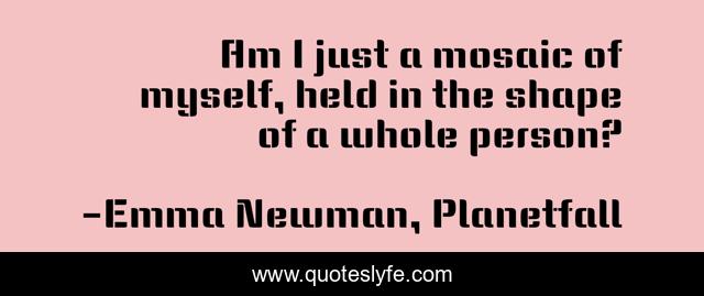 "Emma Newman, Planetfall Quotes." Quoteslyfe.com, 2025. Fri. 05 Dec. 2025. <https://www.quoteslyfe.com/quote/Am-I-just-a-mosaic-of-myself-246508>.