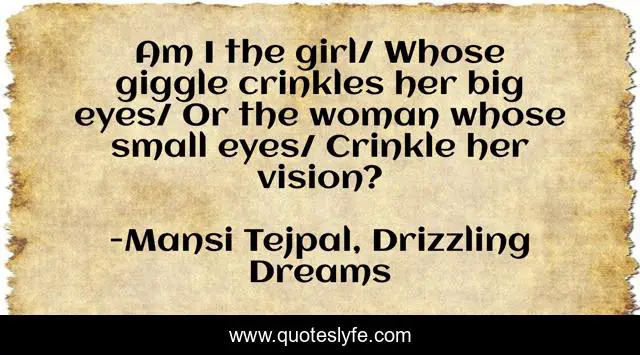 "Mansi Tejpal, Drizzling Dreams Quotes." Quoteslyfe.com, 2025. Mon. 08 Dec. 2025. <https://www.quoteslyfe.com/quote/Am-I-the-girl-Whose-giggle-crinkles-249649>.