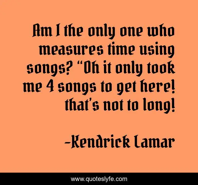 This page presents the quote "Am I the only one who measures time using songs? “Oh it only took me 4 songs to get here! that’s not to long!". Author of this quote is Kendrick Lamar. This quote is about song, music, songs,.