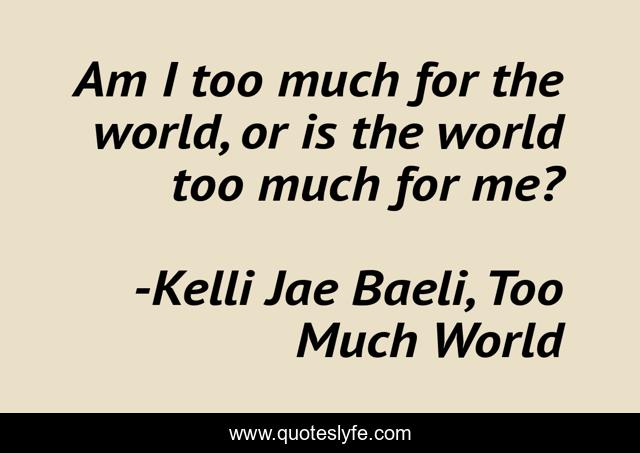 "Kelli Jae Baeli, Too Much World Quotes." Quoteslyfe.com, 2025. Sun. 07 Dec. 2025. <https://www.quoteslyfe.com/quote/Am-I-too-much-for-the-world-171221>.