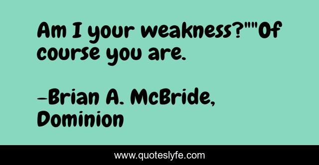 "Brian A. McBride, Dominion Quotes." Quoteslyfe.com, 2025. Sat. 06 Dec. 2025. <https://www.quoteslyfe.com/quote/Am-I-your-weakness-Of-course-you-82787>.