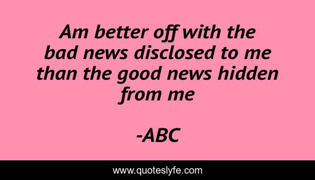 This page presents the quote "Am better off with the bad news disclosed to me than the good news hidden from me". Author of this quote is ABC. This quote is about patience, goodnews, courage, truth, badnews,.