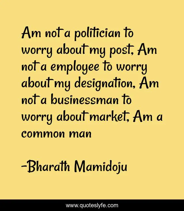 This page presents the quote "Am not a politician to worry about my post, Am not a employee to worry about my designation, Am not a businessman to worry about market, Am a common man". Author of this quote is Bharath Mamidoju. .