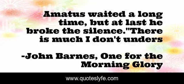 This page presents the quote "Amatus waited a long time, but at last he broke the silence."There is much I don't unders". Author of this quote is John Barnes, One for the Morning Glory. This quote is about mortis, prince-amatus, understanding,.