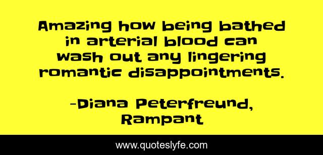 This page presents the quote "Amazing how being bathed in arterial blood can wash out any lingering romantic disappointments.". Author of this quote is Diana Peterfreund, Rampant. This quote is about dating, blood,.