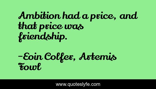 This page presents the quote "Ambition had a price, and that price was friendship.". Author of this quote is Eoin Colfer, Artemis Fowl. This quote is about friendship, ambition,.