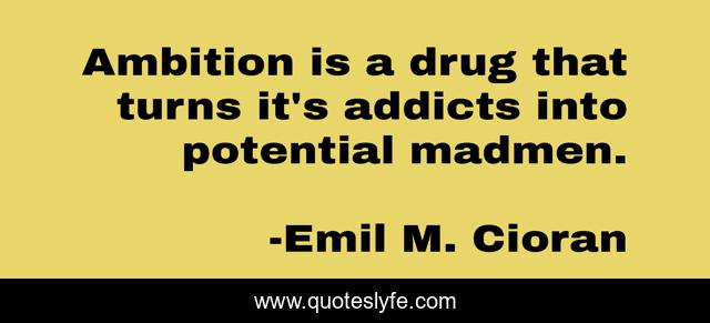This page presents the quote "Ambition is a drug that turns it's addicts into potential madmen.". Author of this quote is Emil M. Cioran. .