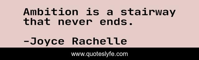 "Joyce Rachelle Quotes." Quoteslyfe.com, 2025. Mon. 08 Dec. 2025. <https://www.quoteslyfe.com/quote/Ambition-is-a-stairway-that-never-ends-214472>.