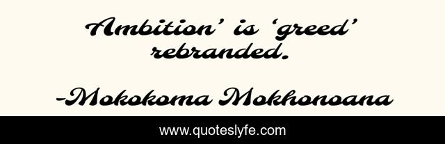 "Mokokoma Mokhonoana Quotes." Quoteslyfe.com, 2025. Sat. 06 Dec. 2025. <https://www.quoteslyfe.com/quote/Ambition-is-greed-rebranded-214557>.