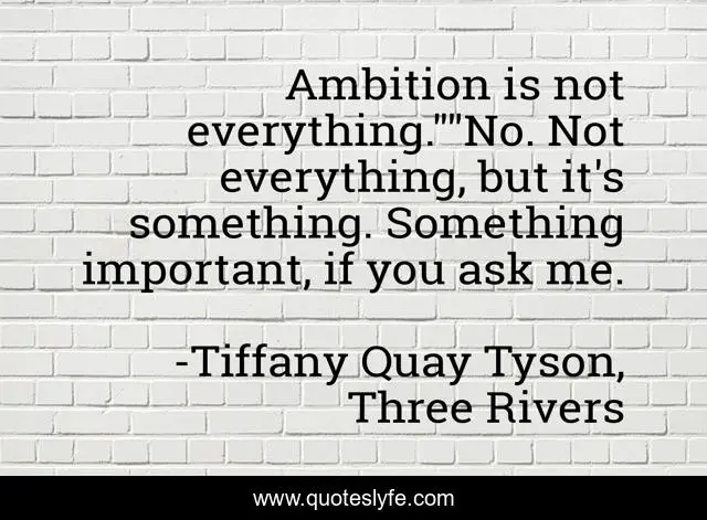 "Tiffany Quay Tyson, Three Rivers Quotes." Quoteslyfe.com, 2025. Sun. 07 Dec. 2025. <https://www.quoteslyfe.com/quote/Ambition-is-not-everything-No-Not-everything-214505>.