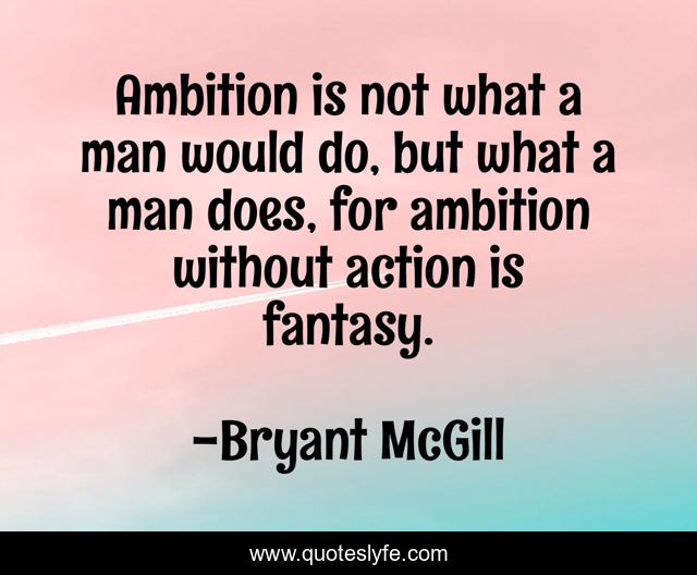 This page presents the quote "Ambition is not what a man would do, but what a man does, for ambition without action is fantasy.". Author of this quote is Bryant McGill. This quote is about action, success, ambition,.