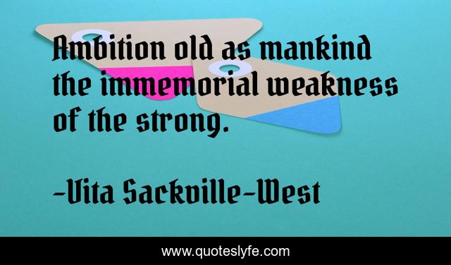 This page presents the quote "Ambition old as mankind the immemorial weakness of the strong.". Author of this quote is Vita Sackville-West. This quote is about control, self,.