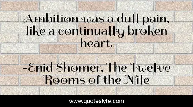 This page presents the quote "Ambition was a dull pain, like a continually broken heart.". Author of this quote is Enid Shomer, The Twelve Rooms of the Nile. .