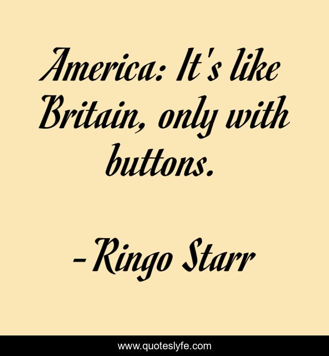 This page presents the quote "America: It's like Britain, only with buttons.". Author of this quote is Ringo Starr. This quote is about humor, button, britain, music, america, ringo-starr,.