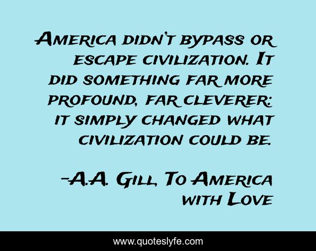 "A.A. Gill, To America with Love Quotes." Quoteslyfe.com, 2025. Fri. 05 Dec. 2025. <https://www.quoteslyfe.com/quote/America-didn-t-bypass-or-escape-civilization-191848>.